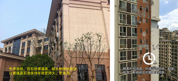來士威不是在制造一個(gè)簡(jiǎn)單的產(chǎn)品,而是延續(xù)建筑與人居的生命。外墻美觀度突顯建筑的檔次,來士威真石漆在用料上不惜成本,會(huì)選擇更優(yōu)良的乳液,添加更多的樹脂,為的就是讓涂裝效果更具保色性和耐久性,讓工程多年歷久持新。