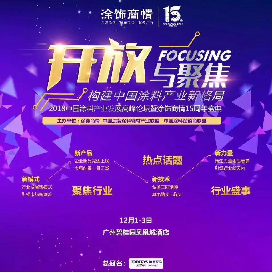 粵港澳大灣區(qū)建設(shè)全面推進的關(guān)鍵時刻、涂飾商情創(chuàng)刊15周年之際,向中國涂料行業(yè)產(chǎn)業(yè)鏈參與者發(fā)出最誠摯邀請:歡迎參與“2018中國(廣州)涂料產(chǎn)業(yè)發(fā)展高峰論壇暨涂飾商情15周年盛典”,共話中國涂料產(chǎn)業(yè)新格局。