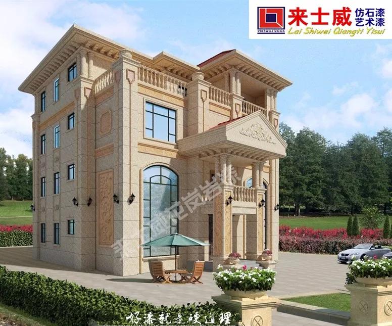 來士威最流行墻體藝術設計:隨著社會的發(fā)展,人們生活水平日益提高,特別對鄉(xiāng)村內(nèi)外墻材料的裝飾、安全、造價、運輸?shù)确矫嫣岢龈咭?,之前備受推崇具有良好防護性的天然石材近年來逐漸被仿石漆所替代。這種新型環(huán)保涂料用專業(yè)噴槍對墻面進行一次噴涂即可得到天然花崗等高檔裝飾石材的花紋和色彩,涂層色彩鮮艷,豐富多變,有優(yōu)異的裝飾效果,而且成本低、施工方便、不污染環(huán)境,【5D水包砂】來士威墻體藝術商院,為你設計美化鄉(xiāng)村別墅,伴隨你家鄉(xiāng)做貢獻!