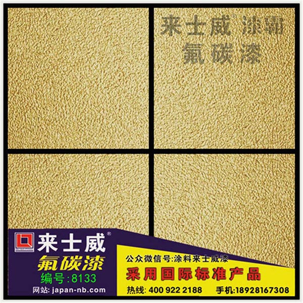 氟碳面漆是選用優(yōu)良氟碳樹脂為基料,添加助劑及各種金屬效果顏料精制而成的雙組份溶劑型外墻漆,具有良好的耐候性、抗污性和抗腐蝕性,金屬效果顏料的隨向異色性賦予漆膜很高的裝飾性和華麗的質感。