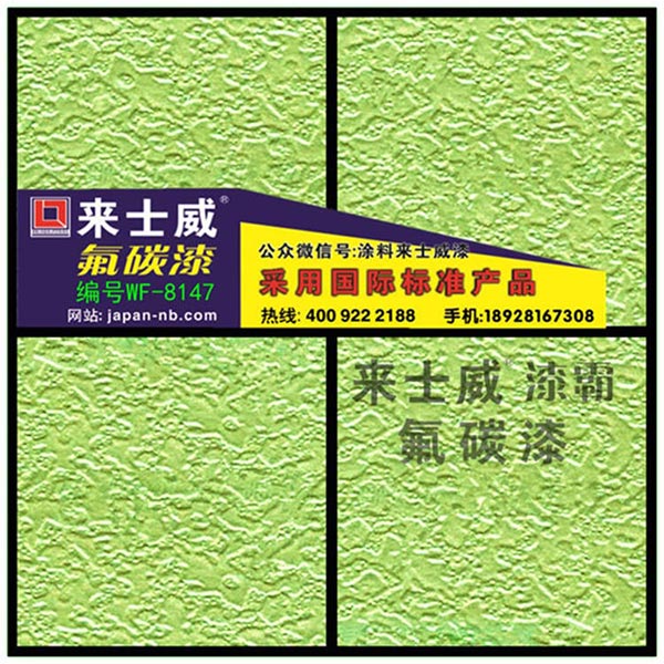 氟碳面漆是選用優(yōu)良氟碳樹脂為基料,添加助劑及各種金屬效果顏料精制而成的雙組份溶劑型外墻漆,具有良好的耐候性、抗污性和抗腐蝕性,金屬效果顏料的隨向異色性賦予漆膜很高的裝飾性和華麗的質(zhì)感。